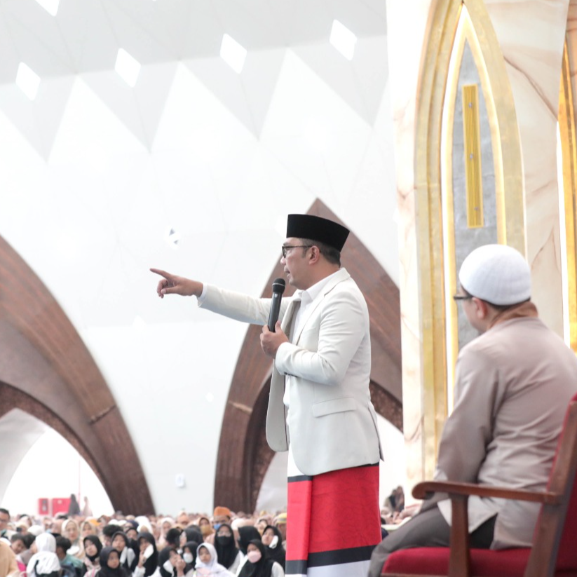 Di hadapan 10 ribu jemaah Majelis Taklim Pakuan, Gubernur terus mengingatkan jemaah agar selalu menjaga ketertiban dan kebersihan termasuk melarang membuat konten di area masjid.